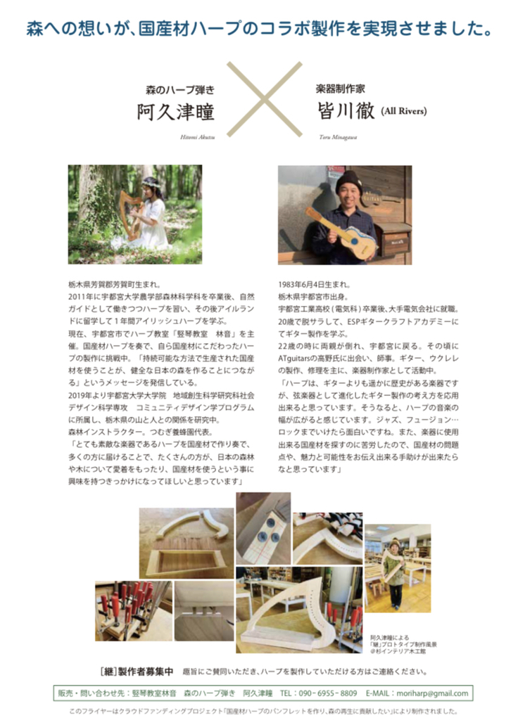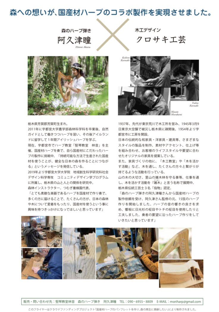 「国産材ハープのパンフレットを作り、森の再生に貢献したい」にご協力くだ去った皆様、ありがとうございます。