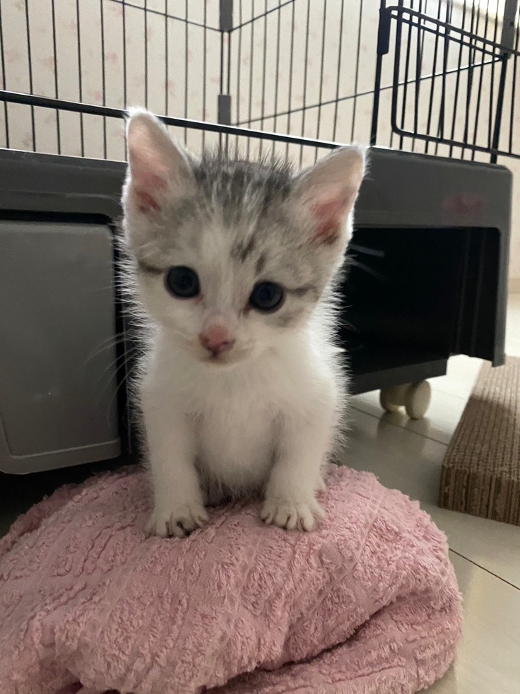 彼は母猫から産み落とされた後、水の溜まっているドブの中で取り残され、その後衰弱しきった状態ではありましたが、近くに住民の方が運よく見つけて保護してくださいました。