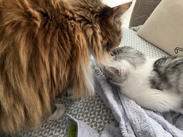 しかし一緒に住んでいれば慣れるもので、今では一緒に遊んだり、寝たり、グルーミングをしたりとすっかり仲良くなりました。