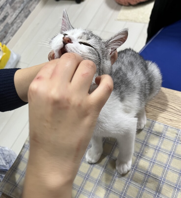 外にいた保護猫でありうちには先住猫が居たため、引き取った日に動物病院へ連れていき病気がないかを検査してもらいました。