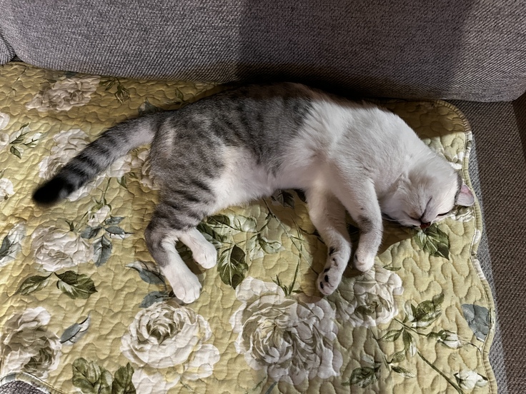 夜中寝ていると足を甘噛みしてきて起こされますが自分は優雅に昼寝を満喫しています😂