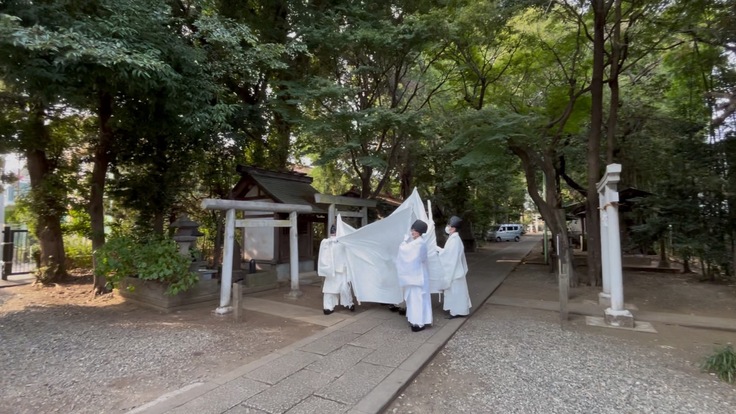 その後、御神体は白布で周囲を覆い、直接目に触れないようにしてお運びいたしました。これは神様の神聖さを保ち、不浄から守るための古くからの作法です。