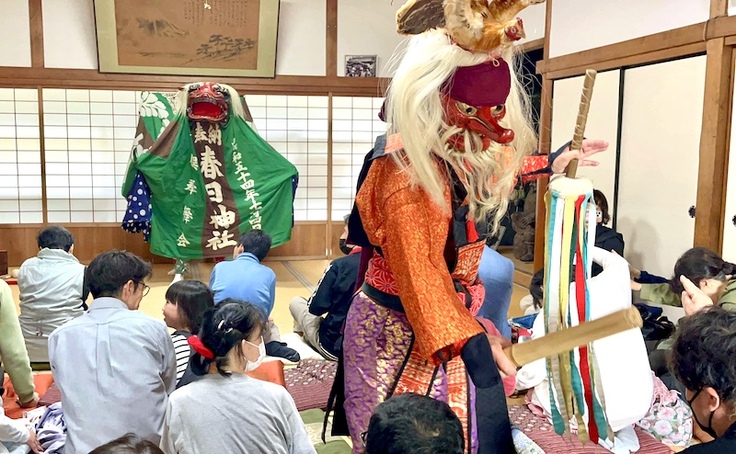 『獅子神楽総舞わし』は午後からでしたが、早々にお客様が大広間にお集まりくださっていて、時間通りに獅子舞奉納はスタート。