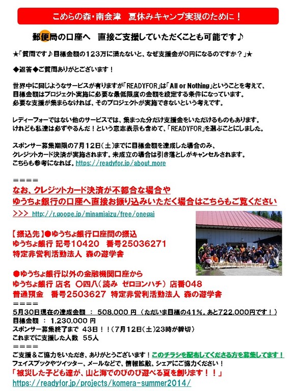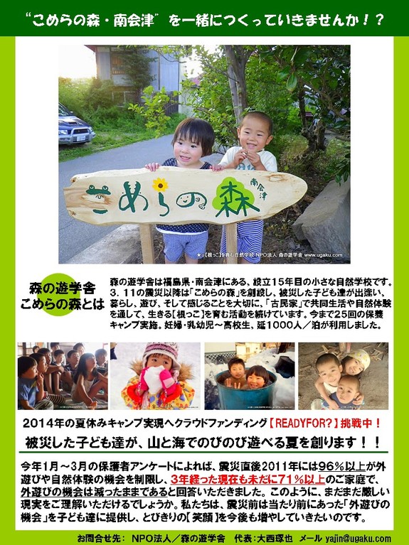 『被災した子ども達が、山と海でのびのび遊べる夏を創ります!!』