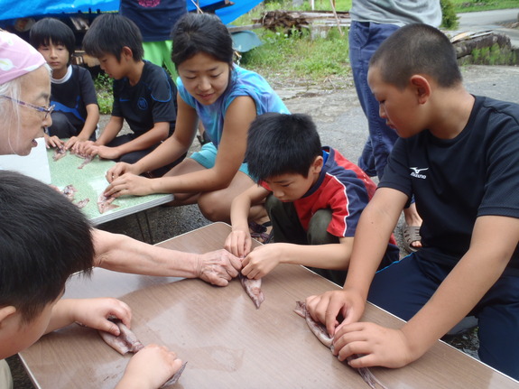 キャンプ中に子ども達とイカさばき。