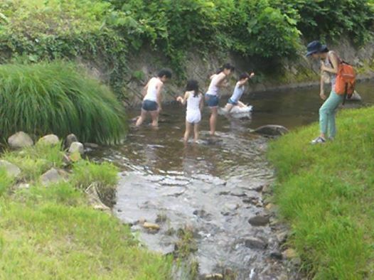 水路には手を突っ込んでみたり、