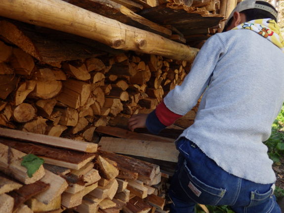 (蔵の改修作業、畑で石拾い、耕して畝立て、薪作り、焚き火など)