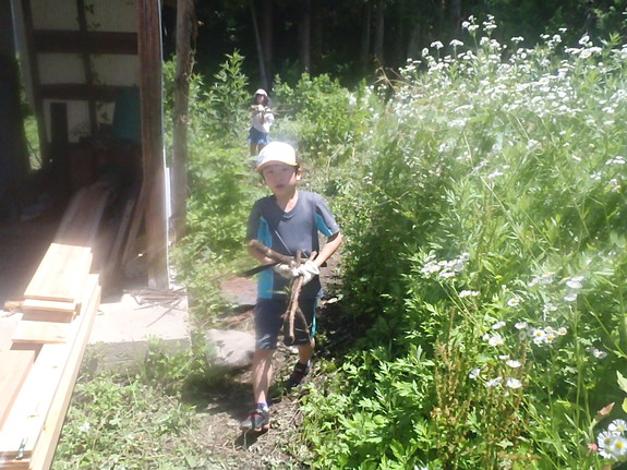 ※薪作り、畑仕事(きゅうりやトマトの棚作り、草むしり、散水などなど)