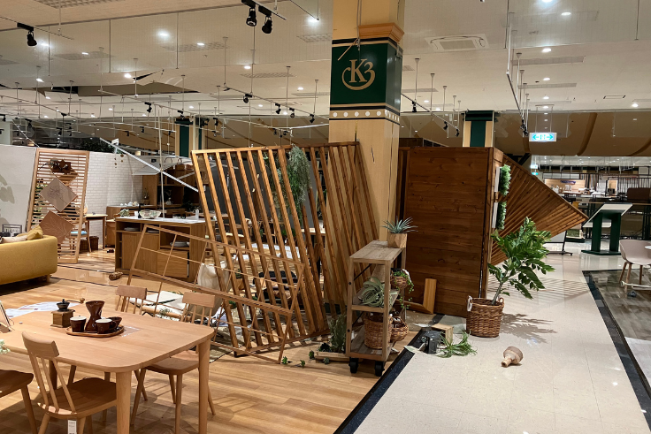 2024年1月1日16時10分、石川県能登地方を震源とする地震が発生し、「ファニチャーパークケースリー」では建物と店内に並ぶ商品に大きな被害を被りました。