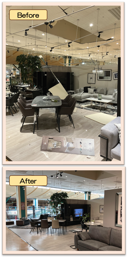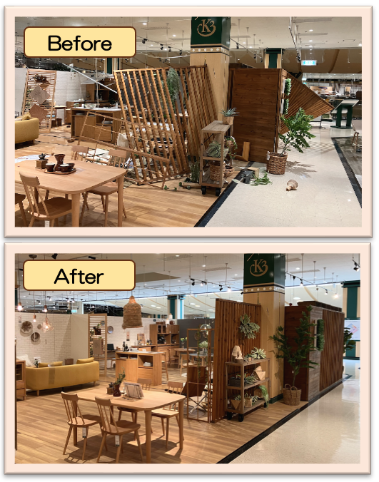 一部ではございますが、完了した工事のbefore&afterと、修復された売場の様子をご報告させていただきます。