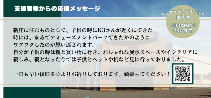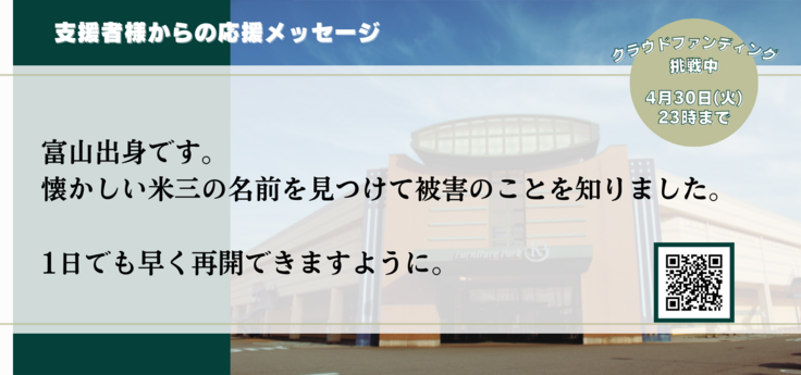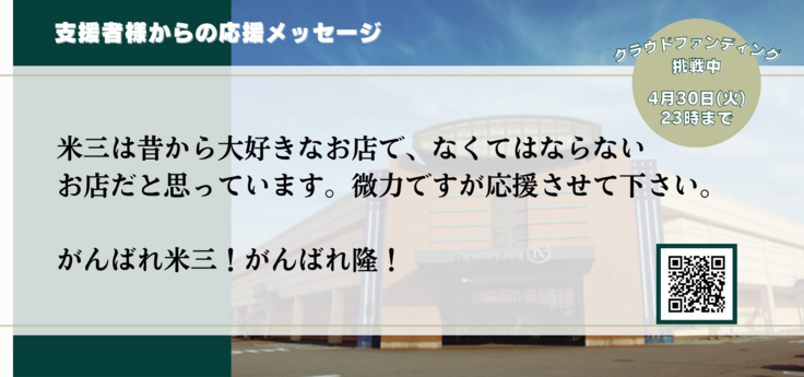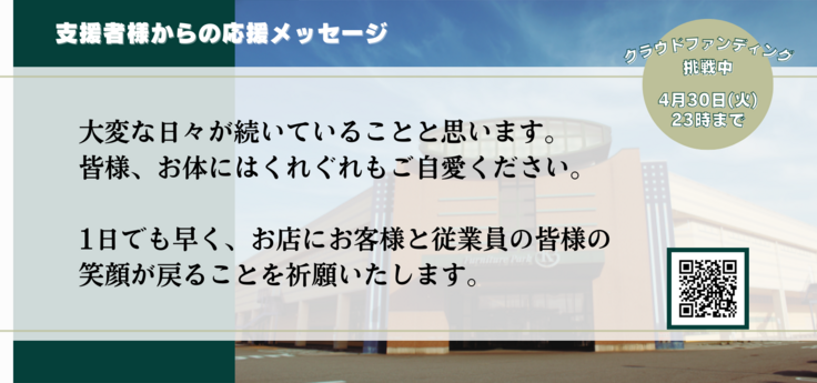 他にも温かい応援、激励のメッセージをいただいており、感謝の気持ちでいっぱいでございます。