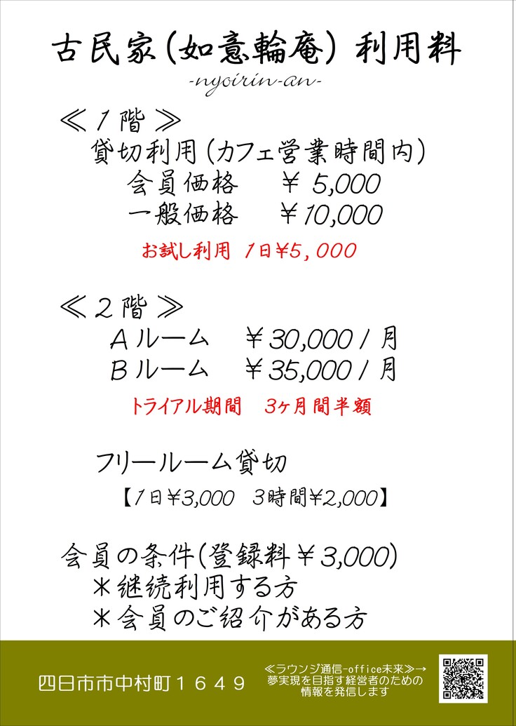 *すでに「レンタルルーム」の運営はスタートしており、利用者さまの募集をしています。