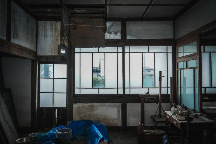 やっとのことで玄関まで辿りついたものの、屋根は崩れて瓦が散乱していて、天井も床も抜けている。時計も止まったままで、カレンダーもその当時の日にちをめくっている。この建物は息をしておらず、ただ劣化を待っているかのような状態でした。