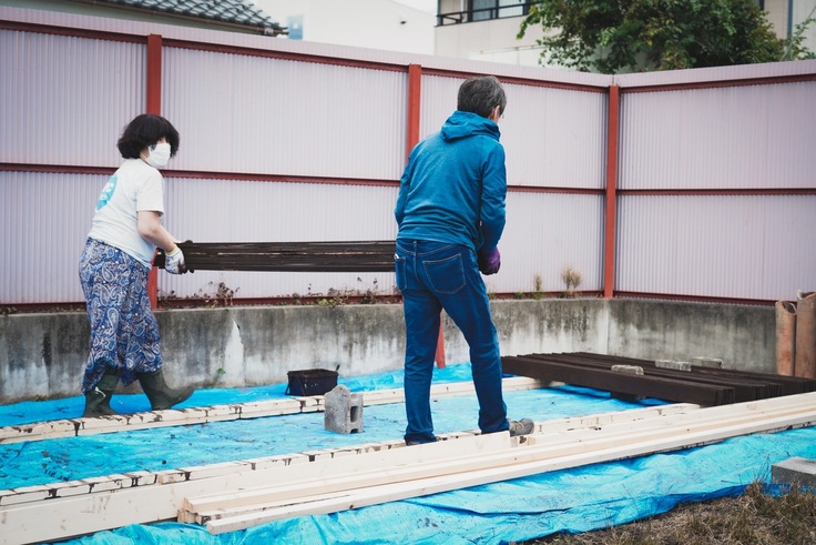 少しでも資金をおさえるために、近所の土木屋さんに声をかけ、安価で廃材を分けてもらい自分たちで塗装し、設置をしました。知り合いの大工さんの手をかりて、なんと素人8人で1日で仕上げることができました。