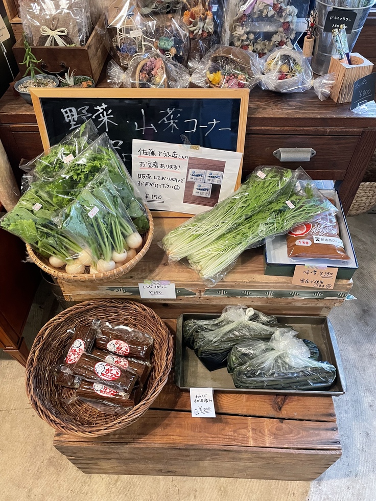 リノベーション中には河辺の探索もしました。そうすると、地元なのに今まで知らなかったことがたくさんあることに気付き、秋田市河辺の良さをみんなに知ってほしい!その思いが強くなりました。河辺、雄和は芸術の里といって陶芸家や芸術家がたくさん活動されています。その作品を展示販売したり、地元で作られた野菜や加工品を販売しようと思ったのはこの時がきっかけです。