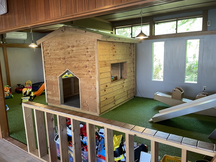 そしてオープンしてから約1年後、2階にほぼセルフリノベーションでキッズコーナーを併設したイベントが出来るフリースペースが完成しました。私自身小さい子供が2人いる事もあり、子連れでもゆっくり食事が出来る場所があればいいなという思いからこの空間を作りました。