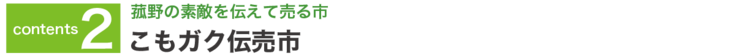“こものを学ぶ”をコンセプトに、町の生業や暮らし方をもっとし知ってもらおうと2017年に始まった、民間事業者主体のイベント。小規模な講座やワークショップが主体の「こもガク塾」と、食を中心とした出展者による「こもガク伝売市」が主なコンテンツです。