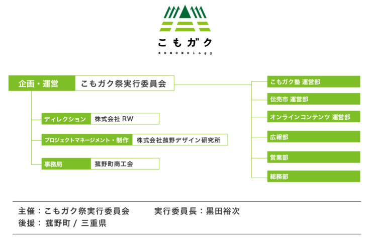 三重県三重郡菰野町(こものちょう)は御在所岳(ございしょだけ)のふもとのまち。豊かな水と肥沃な大地さいgに育まれ、 農・商・工・観が息づいたこの町は人口が4万人を超えました。高速道路が整備され、4万人分の想いを抱えてこの町は大きく変化しようとしています。その大きな局面を前に、我々自身がまず、 “ほんとうのこもの”を知りたいと考えました。“ほんとうのこもの”を知る人を増やしたい。もっとこものに関わろうとする人たちを増やしたい。そして、良心ある未来をともに考えていきたい。町民ひとりひとりが、主体的に関わり優しさに溢れた町を目指す。来るべき未来に備えて、己を知り、敵を知れば、百戦危うからず「こものの未来を考え続けるために もっとこものを学ぶこと」それがこもガクです。