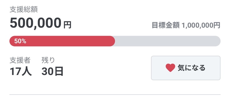 初クラファン開始から半月が経過し、本日、50%を通過することができました✨