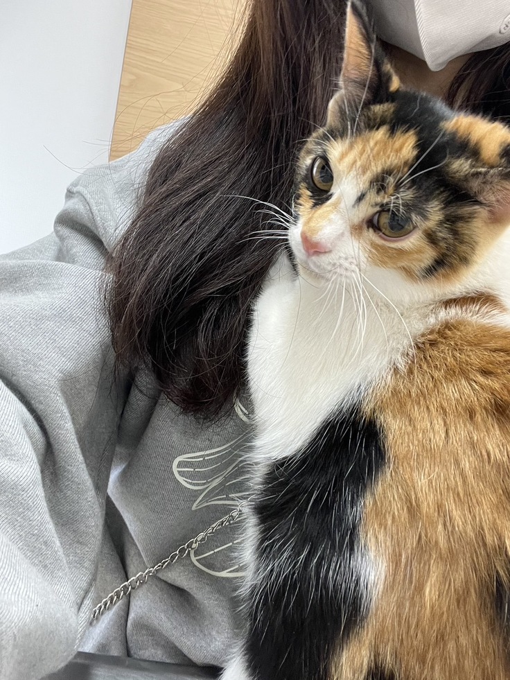 診察中は「ニャアニャア」鳴いて、しがみついていました😅