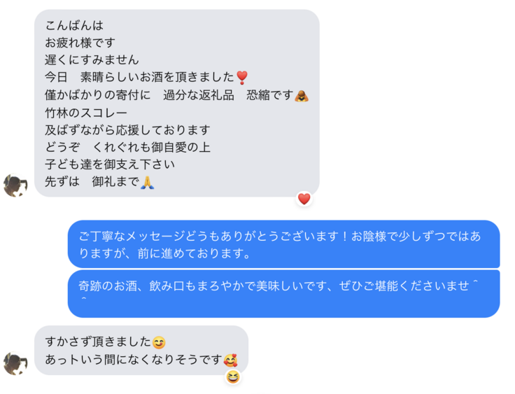 先日、お手元に届いた木村さんからお礼のメッセージをいただきました。