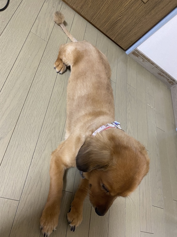 ころちゃんの毛が伸びてきたので玄関の外でチョキチョキ🐶✂️
