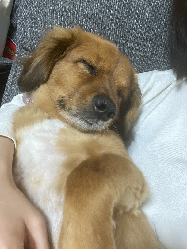 お仕事帰ってきて、ソファに座ったら早速上に乗って寝ちゃいました🥰