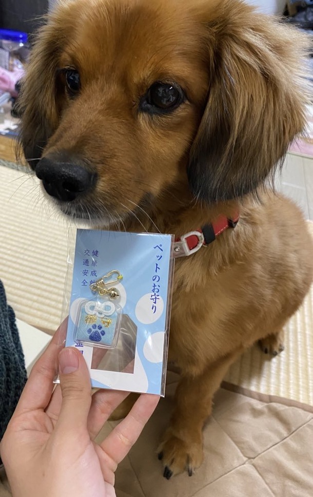 お父さんが出張先でころちゃんにお守りを買って来てくれました☺️🐶