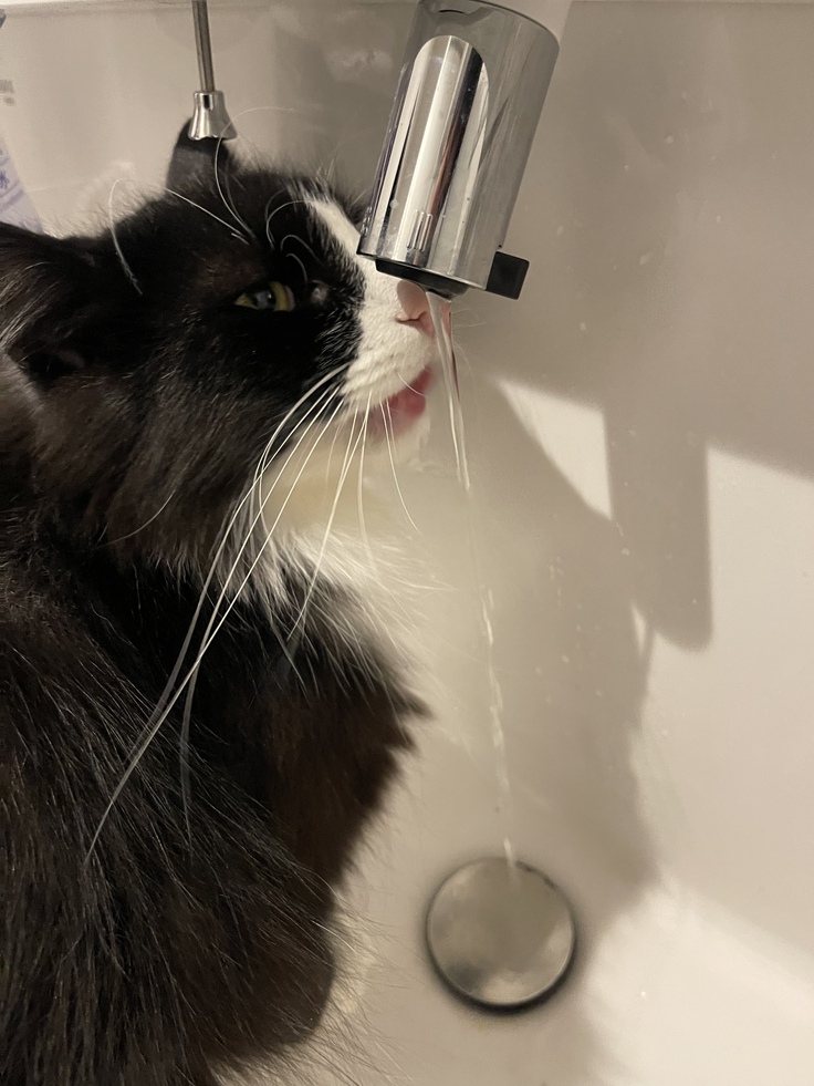 写真は宇宙船乗船中のコロちゃんと水道直飲みです🛸