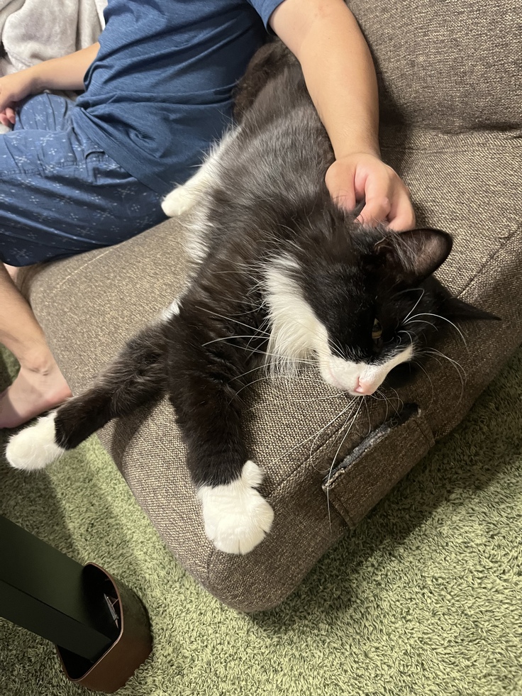帰ってきてからは珍しくパパさんに長時間べったり🐈⬛💕