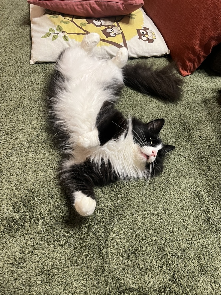 パソコンで作業をしていて振り返ると後ろにはへそ天海老反りコロべぇ🤣