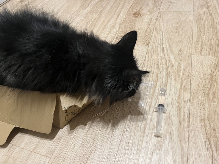 初登場は7月くらいでしたが、投薬に登場したのは8/13の投薬が最初でそれからほぼ毎日お薬の時に用意したら入ってくれるようになりました。