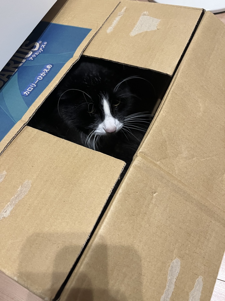 今日の写真は空箱を目敏く見つけて品定めするコロちゃんです🐈⬛🐾
