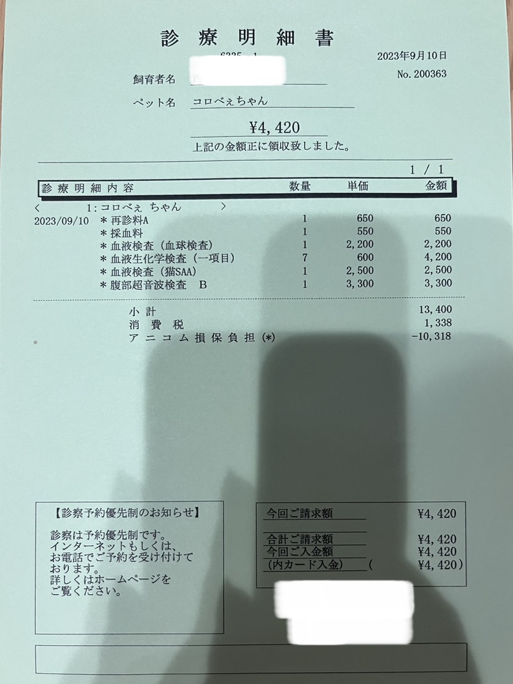 9/9~9/11のコロちゃんと通院の結果のご報告