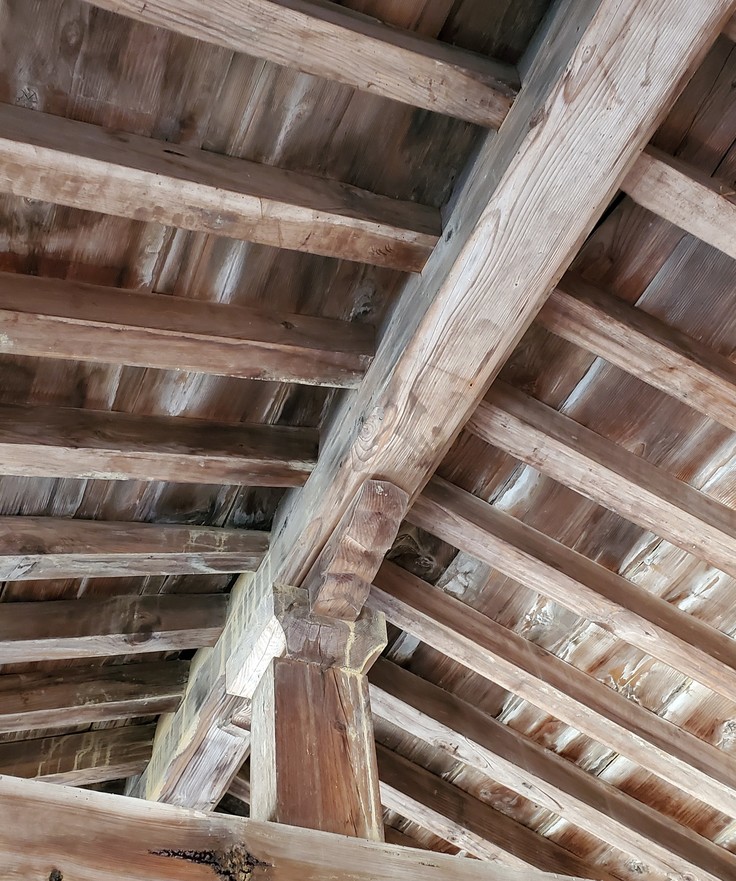 鐘楼と釈迦堂の屋根は修復がされ、銅板になっています。