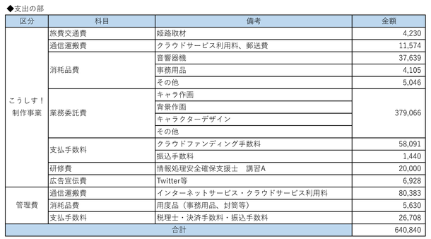 次回は、主に音響関連、広告宣伝費関連の費用に関してご支援賜れれば幸いです。