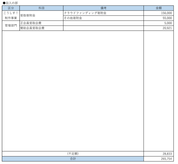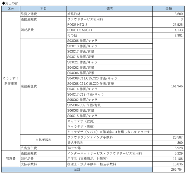今回、企業協賛募集が予想よりも難航しており、2018年上半期の制作費・運営費に関しては、全額を皆様及び弊団体メンバーからの寄附金から支出する形となりました。