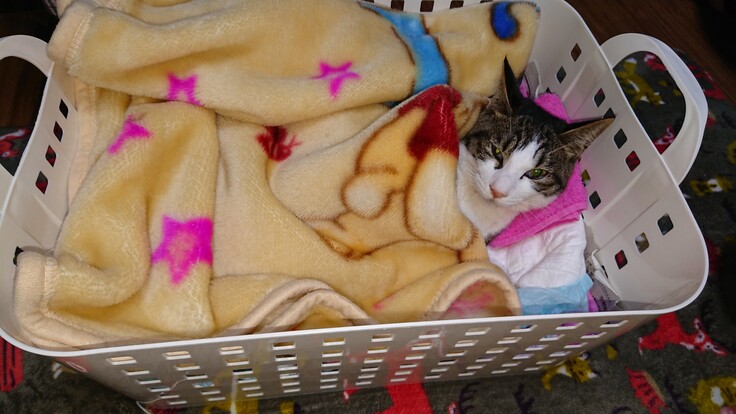 協力病院に行った日は、終始ぐったりと横たわって呼吸も辛そうな瑚太郎でしたが、驚いたことに、自宅に着くと顔を持ち上げ、何か訴えるように鳴き続けたのです。