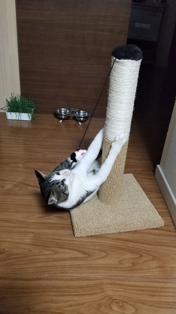 FIPにより、食欲不振が始まったころに購入した、ネズミのおもちゃ付きの爪とぎです。