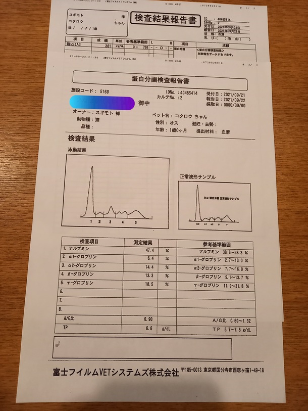 投薬終了後3か月の血液検査と蛋白分画検査の結果が出ました。