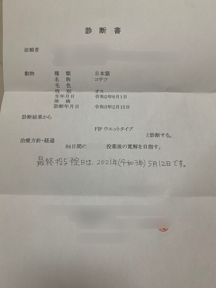 FIPで為す術もなく亡くなっていったのを目の当たりにしていた母の話を聞いていたので