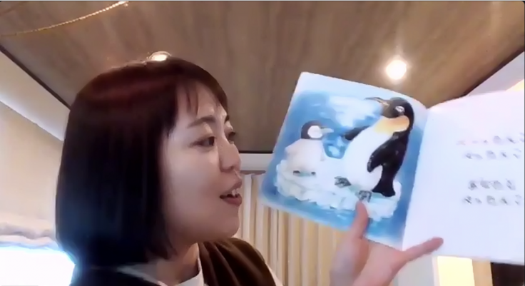 登場する動物が、いろんな体の場所を「ぺったんこ」する、楽しくてかわいい絵本です。しょうじさんのやさしい語り口とともに、画面の向こう側でみなさんがペッタンしている様子は、とてもすてきな時間でした。