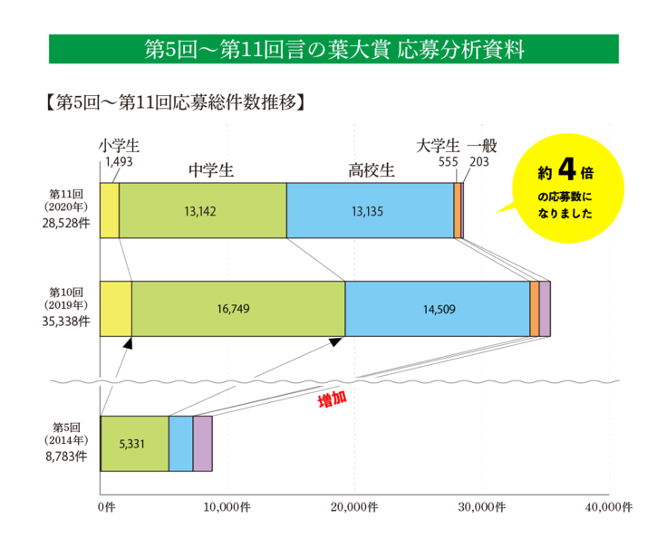 ※ 2019年度第10回言の葉大賞35,338点、2020年度第11回言の葉大賞28,528点