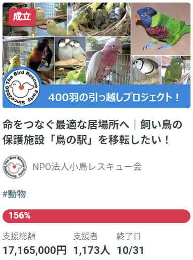 保護鳥たちの施設は埼玉県戸田市にありましたが、建物の老朽化、取り壊しに伴う移転が必要となり、これまで2回のクラウドファンディングを実施しました。