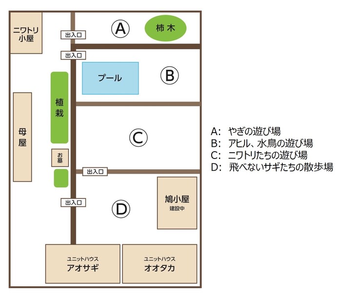 この施設は、鳥たちがいつかまた飛べる時が来るまで翼を休める場所、またリリースができない鳥たちが安全に暮らしていける場所として、鳥たちのための家 -【バードハウス】と名付けました。