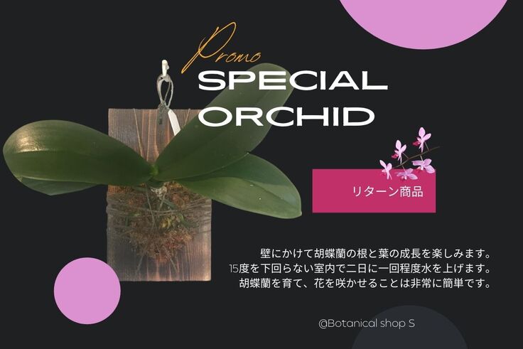 捨てられる運命の胡蝶蘭を回収し、養生を行い、板付けにした胡蝶蘭がリターンです。