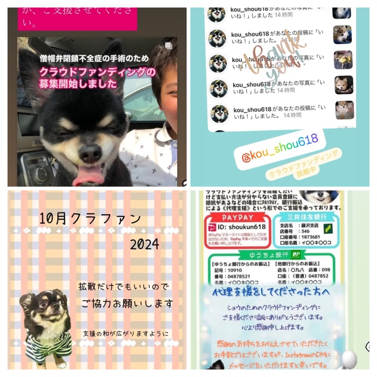 ☆ご支援いただいた支援金は大切に、全てショウの手術費用に使用します。