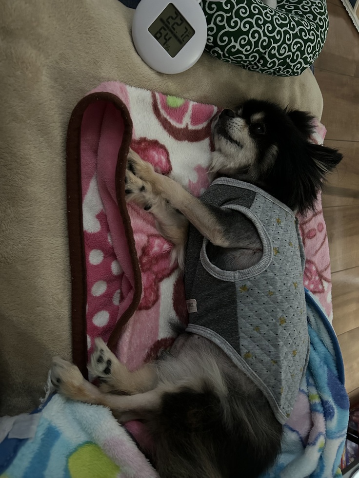 点滴をしていた手足がとても気になるようで、舐めてしまうのでしばらくは、着慣れない服と首のクッションをしてもらわないといけませんね。
