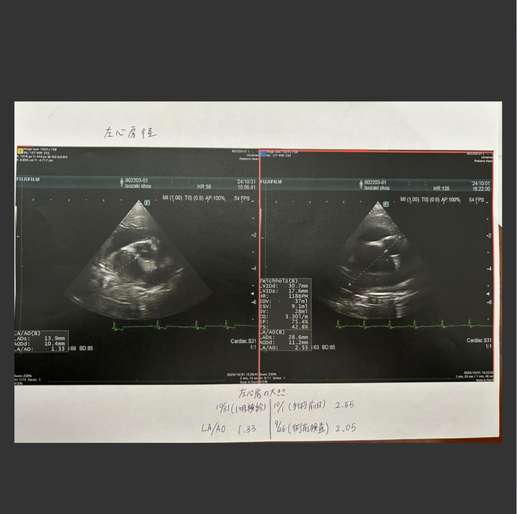 エコー検査で心臓の大きさや逆流値、血栓ができていないかなどをみるそうで、血栓も心臓にできてはいないとのことでした。