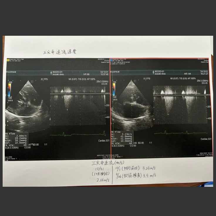三尖便の数値は肺高血圧症と診断される3.0を下回っていました!